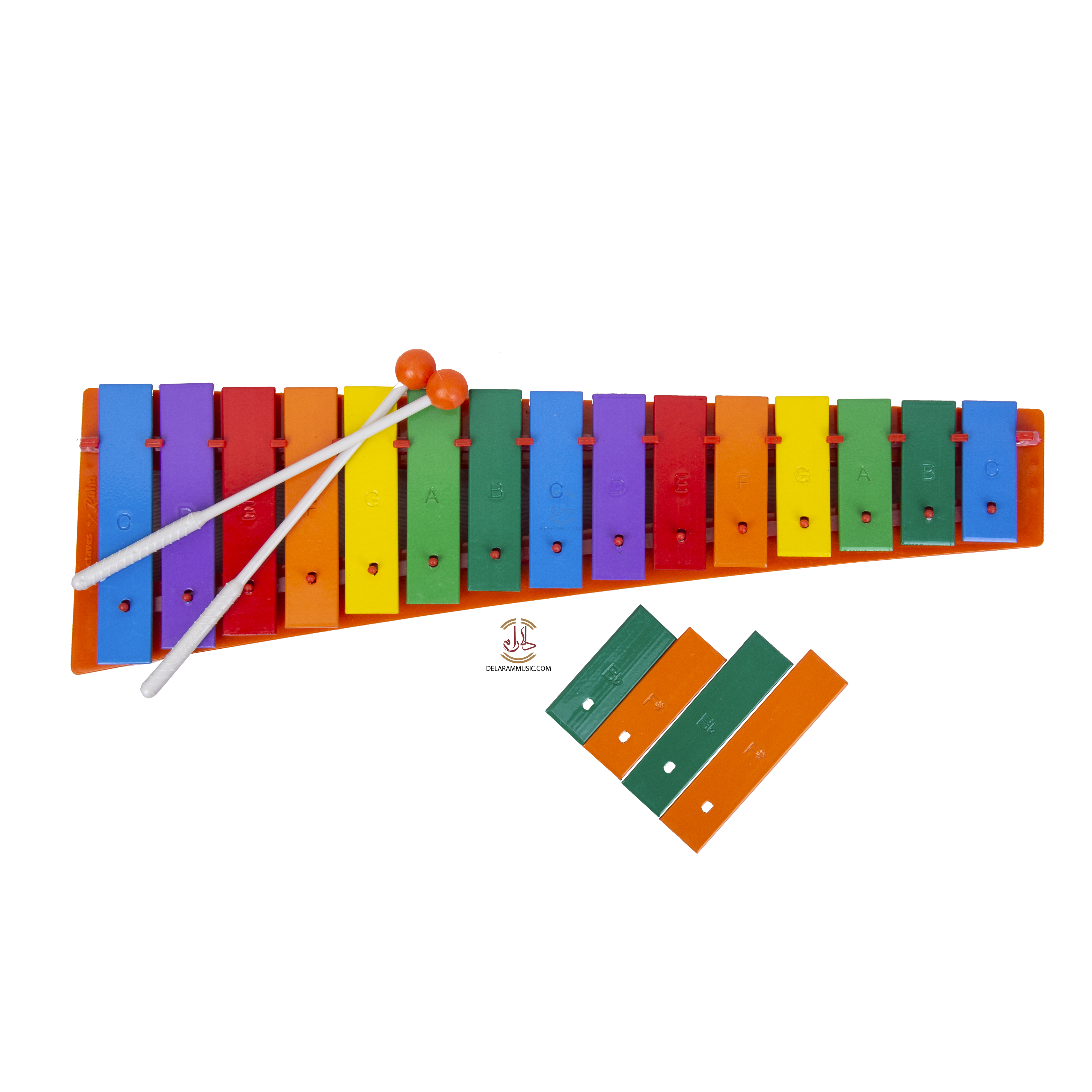 این ساز دارای قطعههایی چوبی یا فلزی در نوع مرسوم آن برای آموزش موسیقی به کودکان با طولهای مختلف است که نتهای گوناگون را اجرا میکنند.