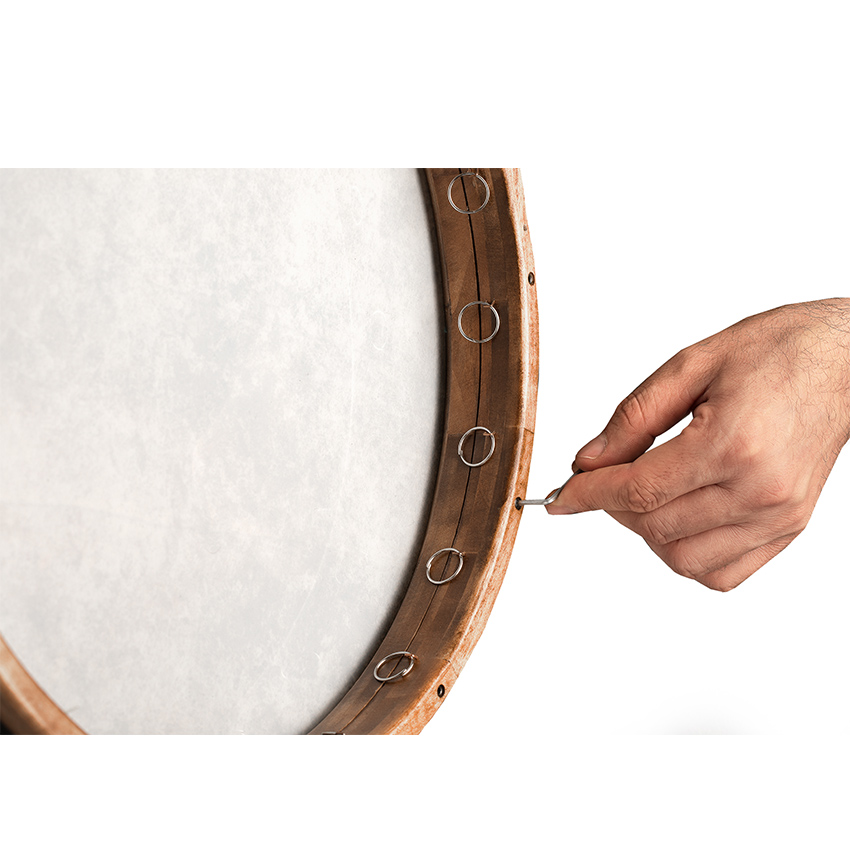 مزیت استفاده از پوست طلق این است که استحکام بیشتری دارد و این که در هوای مرطوب شل نمی شود. قاب چوبی دایره را به این طریق می سازند که ابتدا قاب را دور یک فلز استوانه ای می پیچند و خیس می کنند تا انعطاف پذیری لازم برای خم شدن را پیدا کند. بعد قاب چوبی بوسیله ی چسب در دو طرف بهم متصل می شود و بعد پوست با استفاده از قاب چوبی دیگر با میخ روی ساز می کشند