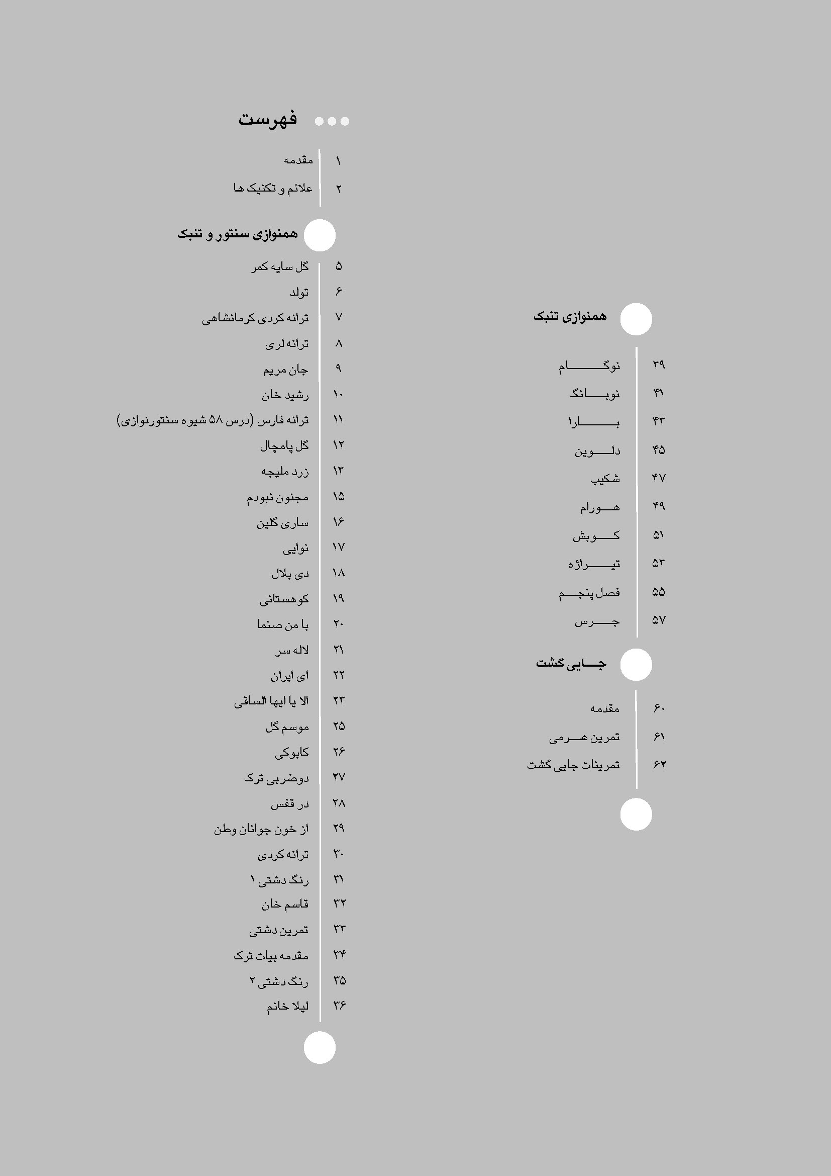 سازهای کوبهای (پرکاشن) غیرملودیک نظیر تنبک و دف هر چند در دو دهة اخیر بهعنوان ساز تکنواز نیز ظاهر شدهاند؛ اما بیش از آنکه به تکنوازی بپردازند، به عنوان ساز همنواز و همراهیکننده، نقش برجسته و پررنگتری دارند؛ لذا بهنظر میرسد یک هنرجوی تنبک همگام با روند فراگیری متد آموزشی باید مهارت همنوازی و همراهی با سازهای ملودیک را نیز بیاموزد. از این رو این مقولة مهم چندان که باید در کتابهای تنبکنوازی لحاظ نشده است. کتاب حاضر با رویکرد تقویت مهارت همنوازی در هنرجویان تنبک نگاشته شدهاست که تمامی قطعات از کتابهای «شیــوه سنتورنــوازی» و «گلنــــار» نوشته استاد ارجمند «پشنگ کامکار» انتخاب شدهاند چرا که این قطعات نام آشنا که همگی ریشه در فرهنگ بومی سرزمین ما دارند و گوش تمامی ما با آنها آشناست از محبوبیت خاصی برخوردارند